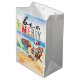 Fire up the holiday cheer with this Beach Christmas with Surfer Santa Barbecue gift bag! Featuring a cheerful watercolor Santa grilling by the ocean, wearing a Hawaiian shirt, red shorts, and his signature hat. Palm trees sway in the background while surfboards and wrapped gifts complete the coastal Christmas vibe.