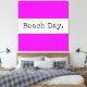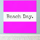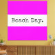 Den här roligten har ett vitt vågrät i mitten av rand med texten "Beach Day" i roligt, retrotypografi. Texten kan vara personlig. Öst och grund rand är den ljusa tropiska rosan.