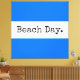 Den här roligten har ett vitt vågrät i mitten av rand med texten "Beach Day" i roligt, retrotypografi. Texten kan vara personlig. Den övre och den grund rand är ljusblå nautiska blått.