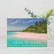 Ställ in scenen för ditt drömdestinationsbröllop med vår Sparat datumet för Beach Destination Wedding. De här korten transporterar omedelbart mottagare till en värld av sol-pussade stränder och milda havsabborrar. Anpassa med information om bröllop på framsidan och ett foto på baksidan. Oavsett om du byter löften under att svinga handflatan eller dansa under stjärnorna, sparar det här datumet det centrala i ditt tropiska firande. upphetsningen och inbjudan era nära och kära för att gå med er för en oförglömlig resa till paradiset