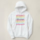 Dam vita hoodie för att matcha din pajama grund. Text för persienndrömmar kan vara personlig eller text kan tas bort. Rand i färg av strandens rosa, blått, orange och gröntar.