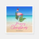 Flamingo på stranden som bär en julhatt med nyare rosa "God jul" utformar julfest-blöjor för julgranar. Anpassad med namnen. Roligt till alla som njuter av en varm jul, Florida.