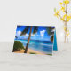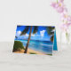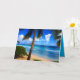 Genom den lush grönten är handflatan ett oändligt blått karibiskt hav av Brittiska Jungfruöarna. Dagen är varm, ljus och solig med vackra blå himmel och vita moln. Vatten är en tropisk turkos färg och får dig att känna dig som att hoppa in en simma. När man står på sandstranden på ön kan man se en skärgård med tropiska öar i avstånd. Lugn av havets vinkara avdrift längs den tropiska stranden. Brittiska Jungfruöarna är till största delen ett vulkaniskt landskap och har en medeltemperatur i Fahrenheit-området över 60 grader under vintern. Insidan av detta hälsningskort lyder: "Ingenting slår Jungfruöarna på en varm solnydag i paradise!" Du kan ta bort det här meddelandet eller skapa en egen med den inkluderade textmallen.