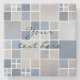 En elegant underlägg med en modern mosaikdesign som inspireras av stranden i blå, grått och beige färg, med en subtil vattenfärgseffekt.