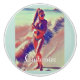 Bikini-badflicksmodell som står på vatten kant och bär en pusselbit för att anpassa sig med ditt eget hälsning, namn, meddelande osv.