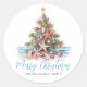 Beach Julgran Classic Round Sticker. Sprid lite kusttuggare med detta fylliga runda dekal som innehåller en strandinspirerad Julgran som är gjord av sjöhäckar och som fylls med en stjärnfisk. Perfekt för att skicka beachy helgdag är detta dekal underbart för alla som bor i tropiska ställe som Hawaii eller för dem som kärlek ett kustlevande vibe. I designen visas träd som är centrerat på en sandbas med mjukt tealjon vinkart i bakgrunden. Under träd är "God jul" skript i elegant, vilket ger en festlig beröring. Den rustiska vattenfärgen stil och blandningen av enkel typografi och skript ge är en avslappnad som ännu är polerad. Perfekt för dekorering av julkortskuvert, party favors eller helgdag med en tropisk skevning.
