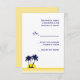 Modern OSA kort perfekt för ett badbröllop. Två handflatan träd i marblått med en gult nedgång i bakgrunden och gult rand vid grund. Underbar för ett evenemang med ett hav-, sjö- eller strandtema. Ren utformning och elegant med contemporaryns utseende. KONTAKTA MARLENEDESIGNER OM DU KRÄVER EN FÄRG ELLER EN ÄNDRING AV ORD