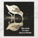 Denna moderna märkning av vin flaska har en vacker bild av fågelreflexionen vid kusterna. En sandpiper doppar sin näbba i vatten i sitt ändlösa sökande efter mat. Rippel i vatten kan ses runt hans ben och hans reflektion speglas i vatten. "Välkommen till vårt busshus" kan enkelt anpassas efter dina behov i kostym.