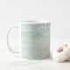 FÄRG PALETTE: Mjuk benvit, med blå grönt och brun. "Beach House Driftwood Ocean Coastal Seashore Coffee Mugg." Rustiskt målad träbakgrund är sol blekt och krackat för den perfekt som är avslappnad i struktur och färg för en kuststuds nautisk hemdekanter, flygbenträning eller annat hemtema för semester. Audrey Jeanne Roberts, upphovsrätt, är grafiskt designad av internationellt licensierad konstnär och formgivare.