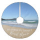 Lägg till stil i ditt hem med den här personligen träd-kjolen perfekt till ditt strandhus i julas. Utformningen innehåller ett foto av typen en av ett slag av stillastående blått vågar och mjuk sand av Sten, utanför Sydney, Australien, kusten. Den moderna, vita texten är anpassade så att du kan lägga till din egen familj namn.