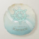 Den här rundan dekorativ kudde i det mjuka färgen av hav och sand gör det möjligt för dig att enkelt lägga till din egen namn och text med hjälp av den angivna mallen. Den enkla hjälmbilden av båten på en nödlidande, vattenfärgad bakgrund markeras med en vågaccent i aqua och vitt. Sök i ID623 för att se hur man samordnar inslag och ytterligare produkter i havet med denna design.