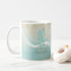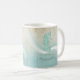 Med kaffet mugg i det mjuka färgen av hav och sand kan du enkelt lägga till din egen namn och text med hjälp av den angivna mallen. Den enkla sjöfärgsbilden på en tryckt vattenfärgsbakgrund markeras med en vågaccent i akvarium och vitt. Sök i ID623 för att se hur man samordnar inslag och ytterligare produkter i havet med denna design.