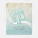Med den här fleece-filén i det mjuka färgen av hav och sand kan du enkelt lägga till din egen namn och text med hjälp av den angivna mallen. Den enkla solglaset och bilden av flinflip flops på en bedrövad, vattenfärgad bakgrund markeras med en vågaccent i aqua och vitt. Om du inte har turen att ha ett strand eller en stuga, ändra bara texten på den här roligten till spelar ingen roll kostym. Sök i ID623 för att se hur man samordnar inslag och ytterligare produkter i havet med denna design.