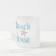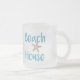 Enkel typografi i havsblått "Beach House" med stjärnfiskkaffe mugg. Perfekten för stranden älskare, strand, sjö eller stuga får en väg eller semesterförhyrningsstranden i egendom. Design från Jenns Emporium.