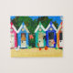 Ett pussel med en rad färgstarka strandhinnor och fiskmås, från ett handmålat pappert kollage av Judy Adamson. Andra produkter och hälsningskort med den här designen finns i min butik.