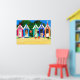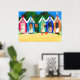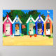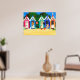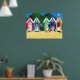 En stor poster av en handmålad papper kollage av strandhinnor.