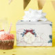 Typografin "JOY," markeras med rullarbetad röd kalligrafi och din familjs personlig namn. Vattenfärgen Sand-dollarn med vintage blå holly-löv, röda bär och en röd båge är centrum av stranden som inspirerat till en papper julomslutning eller en papper avsvärtning. Allt detta är över en bakgrund av vitt träströ. Rekrytera och grafiskt designad av en internationellt känd konstnär och formgivare, Audrey Jeanne Roberts, upphovsrätt.