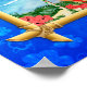 Glad helg från de varma sandstränderna på din favoritstrand på tropiska öar. Handflatan träd dekorerade med juldekorationer och ljus, med en reflextavla mot Julgran, i en bambu ram.