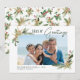 Kustens tematiska tropiska jullkort innehåller en fotomall som är inramad i två hörn med stjärnfisk som är dekorerad med löv, bär och gräs sprigs, med bänken Julhälsningar "Haven n’ hälsning" i modern handskrift.
