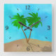 Beach-kollage för vattenfärgsfärg Handflatan Träd Fyrkantig Klocka