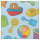 Ikonen Beach leksak har ställts in. Bucket, fisksandformar, leksak, frakt och strand boll. Sömlös mönster. Anpassningsbarnas bakgrund färg.