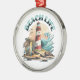 Svart temat julprydnad. Illustration av en fyr-, surfbrädor, handflatan träd och delfin.