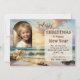 Ett unikt stil julkort för vintage-Helgdagar med anpassningsbarnas foton med en strand och fyr. På baksidan kan du lägga till din jul och nyår önskemål.