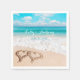 Snygg docka som har en strandscen med två hjärtan på sanden. Den här dockan är perfekt för ett sommar- eller strandtema bröllop. Inbjudan till bild är en mysigt och välkommen ton för er speciella dag. Det är perfektens napkin för en havsfront eller ett destinationsbröllop.