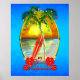 Mele Kalikimaka, Hawaiian för God jul. Björnkonst med en handflatan träd som dekorerats med ljus och prydnadsföremål under jul och med en tropisk havsblå bakgrund.