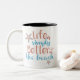 Starfish, och citat: "Livet är helt enkelt bättre på Beach"-kaffet mugg. Perfekt till stranden, sjö eller studenhemmet. Lägg till på tornet vid strand- och semesterförhyrning i egendom. Eller bara perfekt för alla dem som bara kärlek stranden. Utformning av Jenn's Emporium.