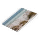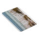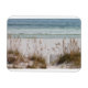 Fotografi av en strandanslutning som visar havets surfa, strand och övre gräsbevuxen zon och väg till strand.