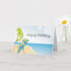 En vacker bidagstidning hälsning. Ocean, paraplyer, varm sand, blå himmel och handflatan träd. Hälsning är perfekt för pension och årsdagen är också! Text kan ändras.