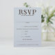 Ett kort för svar på perfekt med 3 linjer för livsmedelsval och ett utrymme för en begäran från sång eller livsmedelsallergi. Skicka ett meddelande om du behöver anpassa dig ytterligare.