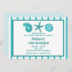 Den här roligten är en inbjudan till strandfest och innehåller en snäckor och en text om stjärnor och anpassade på en teal och vit strimlad bakgrund.