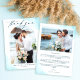 Säg "tack" i stil med det här Beach Photo Bröllop-tackkortet, med en fantastisk blå vattenfärg stänk, en modern bågdesign och kalligrafi av eleganten. Visa din speciella dag genom att lägga till två personliger som fångar skönheten i ditt sommarbadbröllop. Det är enkelt att anpassa, men jag är kärlek för att hjälpa dig att skapa perfekten för dina gäster!