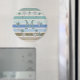 Lägg till en pekstrand stollig i kylskåpet med magnet i blått och sankt än rand och stjärnfisk accentuerad med ditt monogram. Se mer i denna "Beach Rand and Starfish"-designsamling i Camp_and_Cottage på Zazzle.