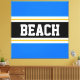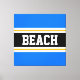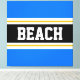 Den här färgstarka sportetiska designen har fet BEACH-text inuti ett stort svart vågrät i rand med vit och gyllene gult tävla ränder mot ljusblå yttre ränder. Texten kan vara personlig.