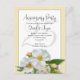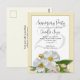 Inbjudningskort för årsfest med design med vita rosor. All information om festen är tryckt på framsidan av detta vackra vykort. Det skiktade utseendet har realistiska strandrosor längst ner med öppna blommor, knoppar och grönska. Textmallen har ett stort nummer bakom inbjudningstexten, där årsdagen kan läggas till. Texten är kantad med en blekgul färg. Använd textmallen på baksidan för att lägga till adresser ett och ett, eller ta bort exempeltexten och adressen efter köpet.