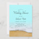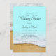 Beach sand möhippa-inbjudan för ett par. Aqua Blue färg är bakgrunden överst för utskriven text. Skumlig surfa vatten på stranden vid grund är bakgrundsbilden som ska innehålla registerinformation och OSA. Använda för en "Jack och Jill"-dusch eller för ensamen.