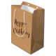 Sandcastle i stranden med solnedgången himlar och Grattis på födelsedagen. Text kan ändras eller tas bort.