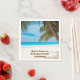 Paket om 50 vita pappra cocktailblöjor med en bild av en pristinstrand, handflatan träd och ett omöjligt blå himmel. Valfri text. Se matcha trasa-napkin, trasa-bordstablett, papper bordstablett och underlägg. Se hela insamlingen av "Shipwreck Napkin" i LIVSMEDEL/BEV | Linens-sektion.