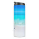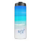 Vattenflaska på strand- och havsscenen. Vackra hav och himlar är grunden för anpassad design. En anpassningsbar till ge är ett semestervibe. Underbar för bröllop, familj eller kryssning i party.