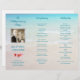 Beach-bröllopsceremonin kommer att vika om tredjedelar, med fotomall och plumeriablommor. Turkos vatten och matcha text över en strand- och sandbild med fyrkantiga foto av paret, som kommer att finnas på framsidan av detta uppspelade program. **Observera att baksidan av detta papper kommer att vara vit - ingenting kan läggas till baksidan.