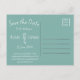 Om du är tittar för ett oförglömligt sätt att låta dina vänner och familj få veta att ditt turistbröllop på destinationsstranden snart kommer, är vårt vykort "Save the Date" med en vacker sjögång på mousserande glas bara perfekt! Kortet passar perfekt för ett strand- eller havstema och är designat för att fånga den speciella dagens skönhet och elegans i en enastående bild. Låt den här nya och sofistikerade vykortstransporten till din drömstranddestination ta dig och dina kära hjul. Med sina blåa nyanser och lugnande nyanser är den här fina designen säkert att ange tonen för ditt oförglömliga firande. Lägg bara till dina uppgifter och det är redo till e-post!
