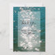 Den här strandkonstruktionen visar att vatten är mousserande i solljuset. Solljuset reflekterar och skapar gnistor mot havsblått vatten. Ordalydelsen är elegant utformad med en vit ogenomskinlig bakgrund från gräns. Det här är den perfekt strandmålets bröllopsdesign som är perfekt för en sommar eller en tropisk ö bröllop. Elegant och romantiskt bröllop på stranden tack vare att du har kort med modern inslag. Det finns också möjlighet att matcha bröllopsinbjudningar och andra artiklar i kontorsartiklar.