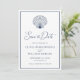 Beach Seashell Elegant Navy Blue Bröllop Spara Datumet