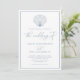 Beach Seashell Elegant White Dusty Blue Bröllop Inbjudningar