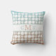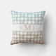 Krisp, vita silhuetter av havsikoner - en snäcka för schalottenlök, stjärnfisk, tropisk fisk och sanddollar - ligger uppåt längs mönstret mot en övertonad bakgrund färg som flyter från sandstranden vid grund till akvablått överst. Mittvita pub, accentuerat med två tunna linjer aqua, har en enkel använda där du kan anpassa kudden med din egen text - ditt namn, ditt citat eller helt enkelt använda som visas, och ersätta med ditt eget monogram. En ny hemdekoration för alla strandar älskare.