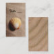 Sandy strand med ett scallop snäcka bröllop bord kort.