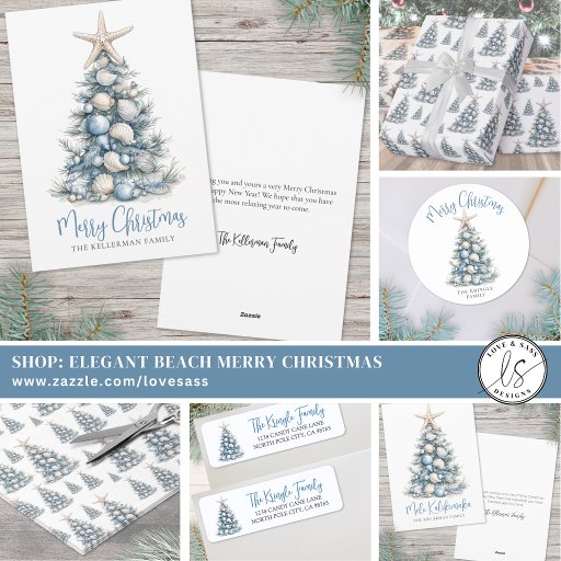 Elegant Blue & White Shell Beach ChristmasDesignad av Jo P.